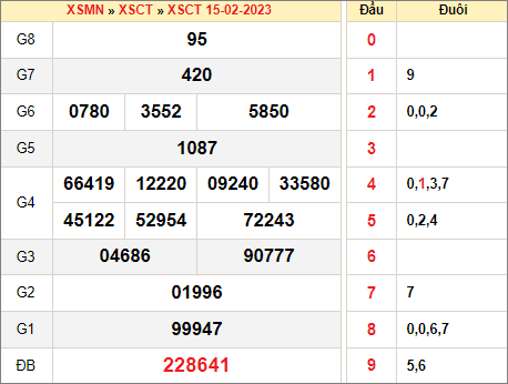 Thống kê đầu lô tô Cần Thơ ngày 15/2
